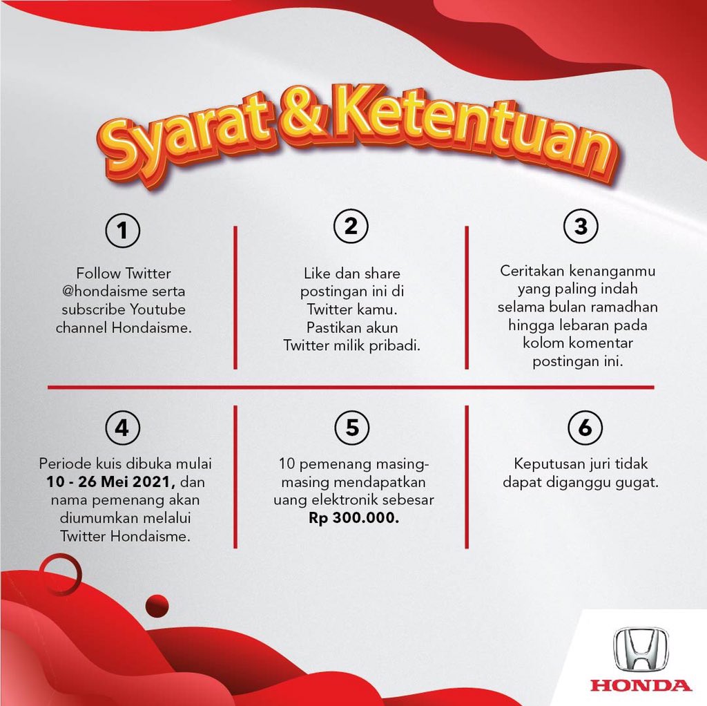 - Morning, Hondaisme! Jangan lupa ikut Giveaway Lebaran dengan total hadiahnya Rp. 3.000.000,- untuk 10...