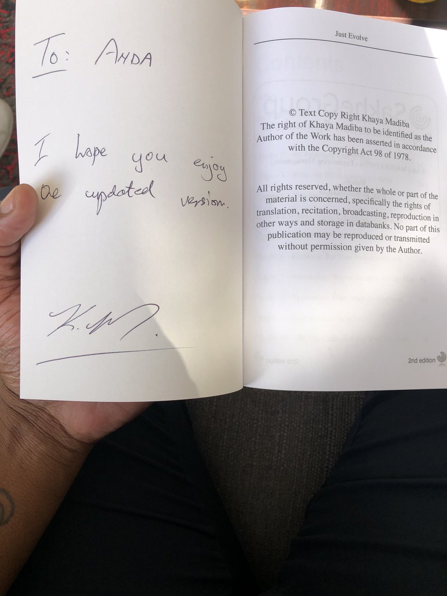 - S/O to my dude Khaya for this signed copy of his new book. 1st...