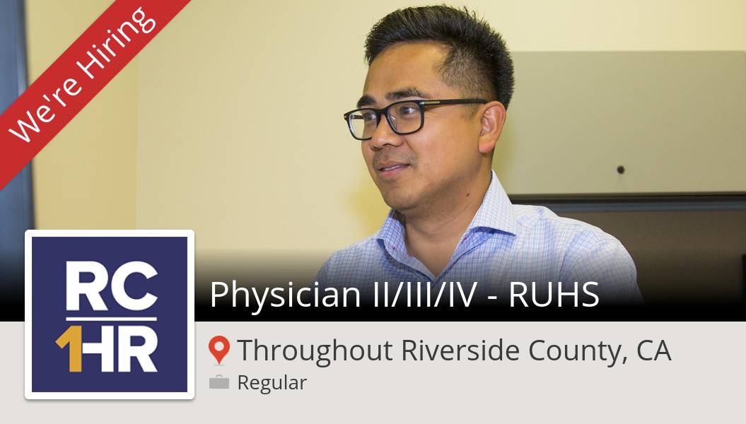 - #Physician II/III/IV - RUHS needed in #ThroughoutRiversideCountyCA at #CountyofRiverside. Apply now! #job workfor.us/riversidecount… #Riv...