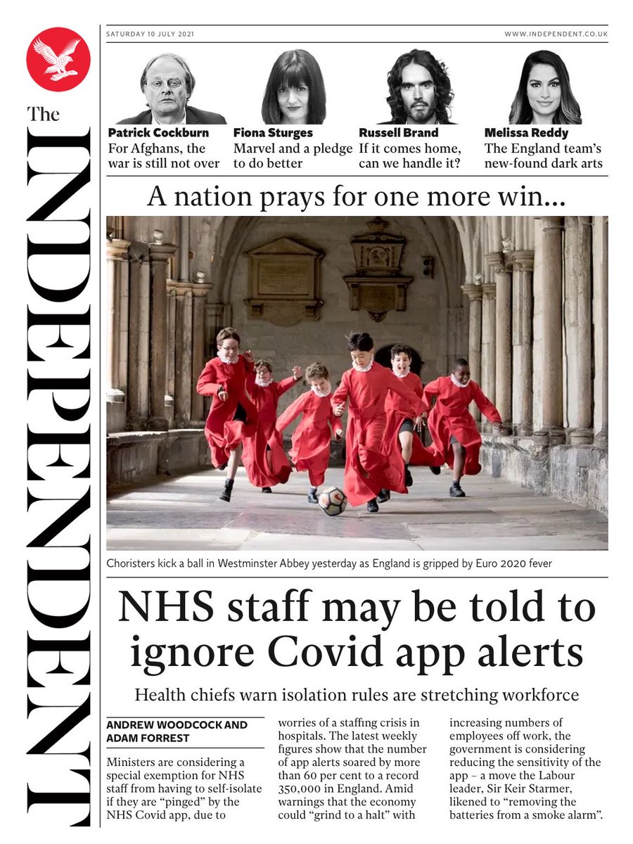 - INDEPENDENT DIGITAL: NHS staff may be told to ignore Covid app alerts #TomorrowsPapersToday