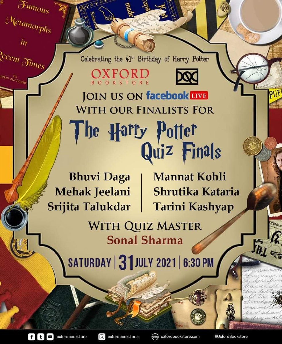 | Join us today at 6.30 PM for the Harry Potter Quiz Finals Live on... Posted: 30 Jul 2021 08:09 PM PDT Join us today at 6.30 PM for the Harry Potter Quiz Finals Live on Oxford Bookstore Facebook page. The event is presented in association with @DelhiQuizClub Quiz Master- Sonal #apeejaygroup #oxfordbookstore #harrypotter #harrypotterbirthday #jkrowling #quiz This posting includes an audio/video/photo media file: Download Now |