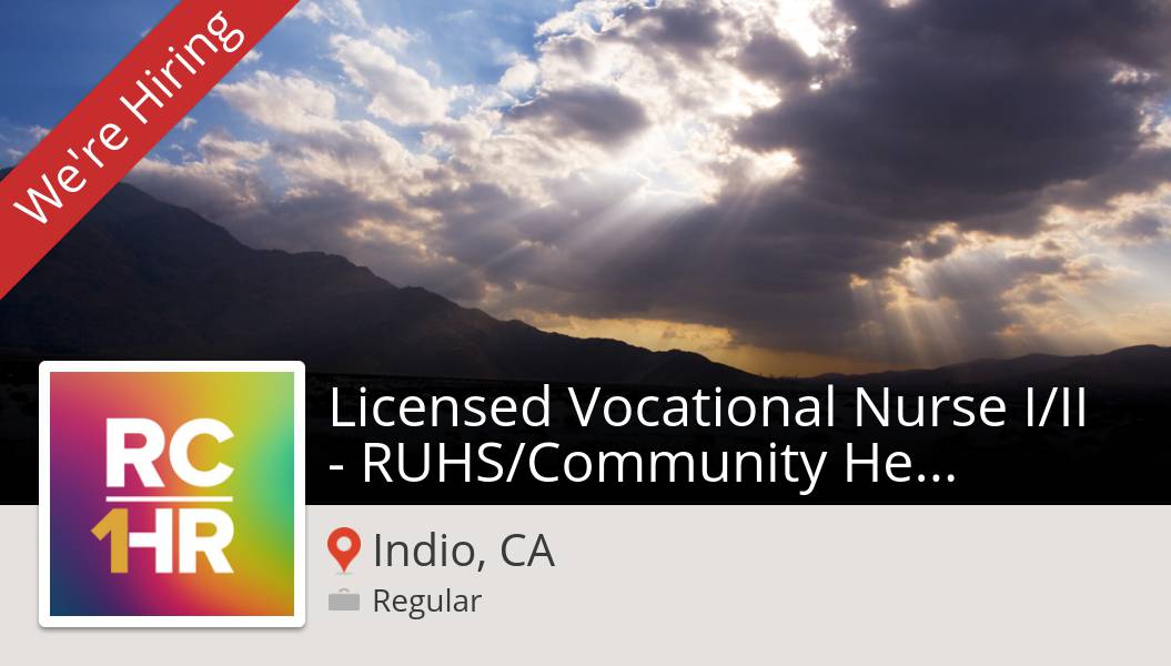 - New #job opening at #CountyofRiverside in #IndioCA! Licensed Vocational #Nurse I/II - RUHS/#Community Health...