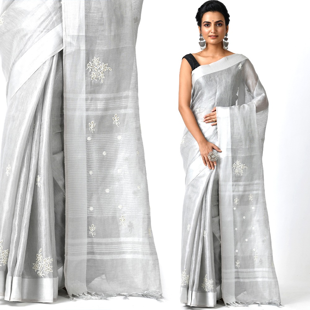 - Shop this pastel grey saree with delicate embellishments from The Pastel Playlist, curated by...