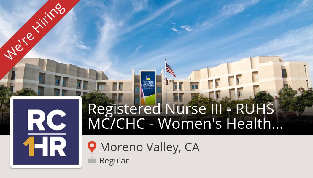 - Registered #Nurse III - RUHS MC/CHC - Women's #Health Center (#job) wanted in #MorenoValleyCA....