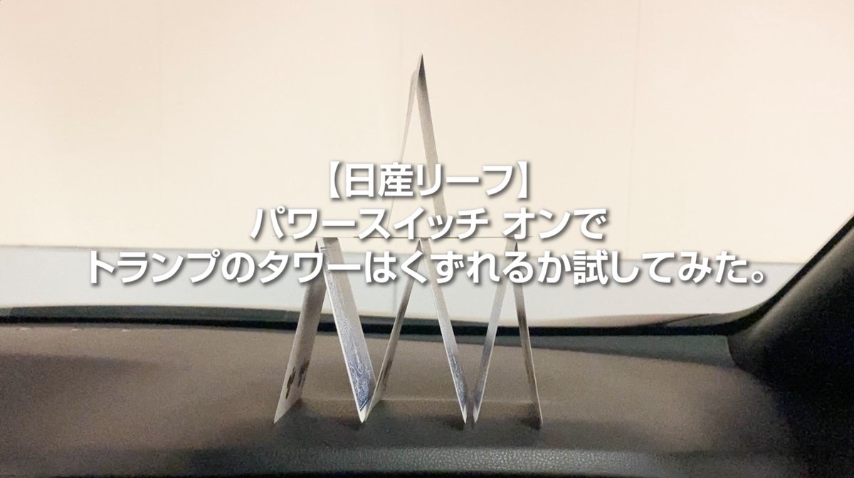 - 【試してみた】#日産リーフ の静粛性 #電気自動車 ならではのスタート時の振動の無さを、バランスの繊細なトランプタワーを使って検証してみました♪ 果たして崩れないのか...!結果は動画をご覧ください🚗 #EV
