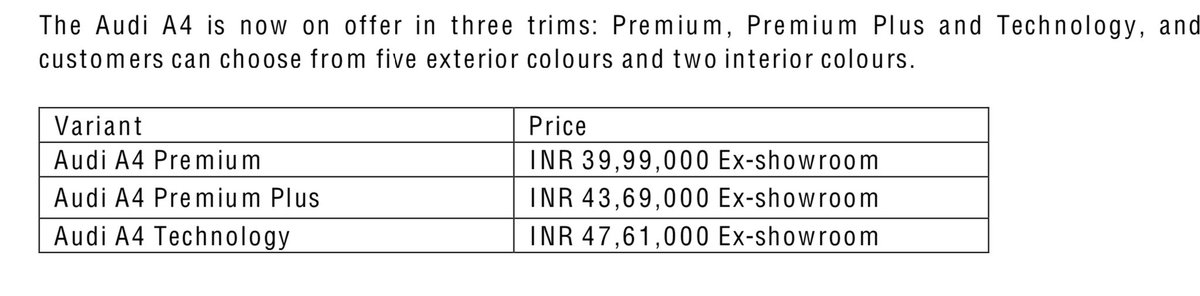 - A more affordable @AudiIN #A4 Premium makes it to the Indian market. Priced at...