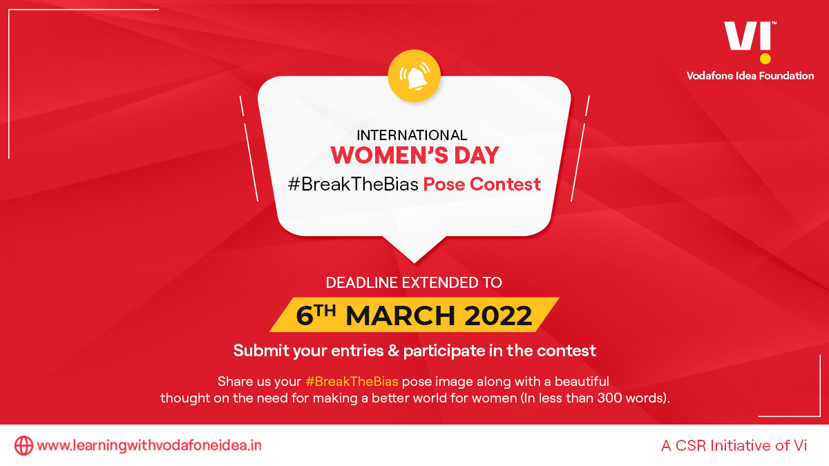 | Posted: 05 Mar 2022 01:52 AM PST Looking at the astounding response, last date of participating in the '#BreakTheBias Pose Contest' has been extended to 6th March 2022. To submit your entries, click: bit.ly/Contest_Womens… . #LearningwithVodafoneIdea #winprizes #IWD2022 #WomensDayContest #BreakTheBias |