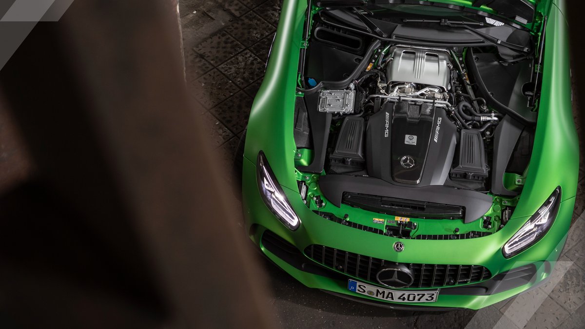 Push the boundaries with the 585hp V8 biturbo engine. The all-new Mercedes-AMG GT R. #HandcraftedByRacers